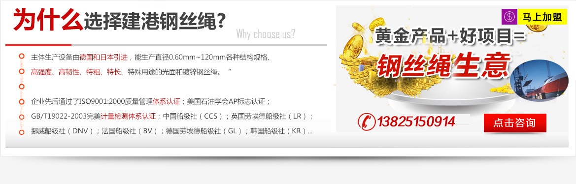 建港鋼絲繩加盟是3年前開始做的,選擇與建港鋼絲繩合作很簡(jiǎn)單,當(dāng)時(shí)我想再找一個(gè)鋼絲繩品牌,通過朋友介紹